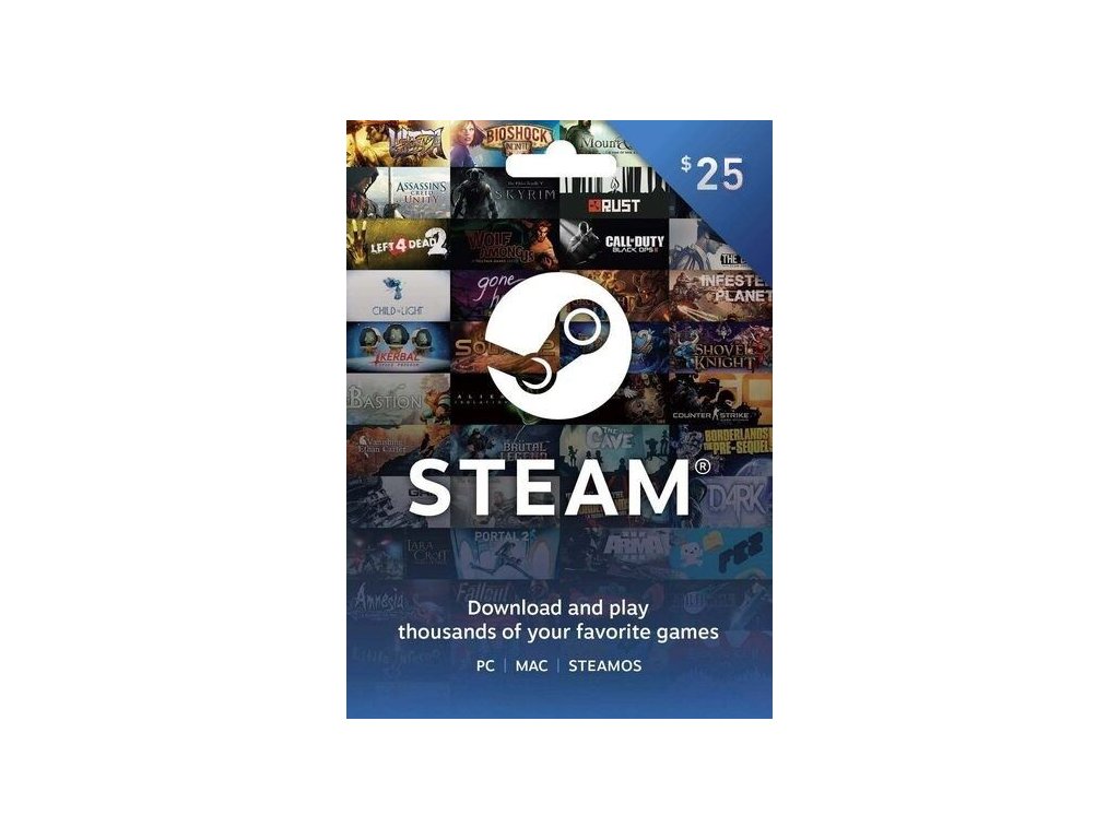 Kupón pro oficiální platformu Steam, který Vám, nebo Vámi obdarované osobě přidá 25 USD na účet do Steam Wallet.